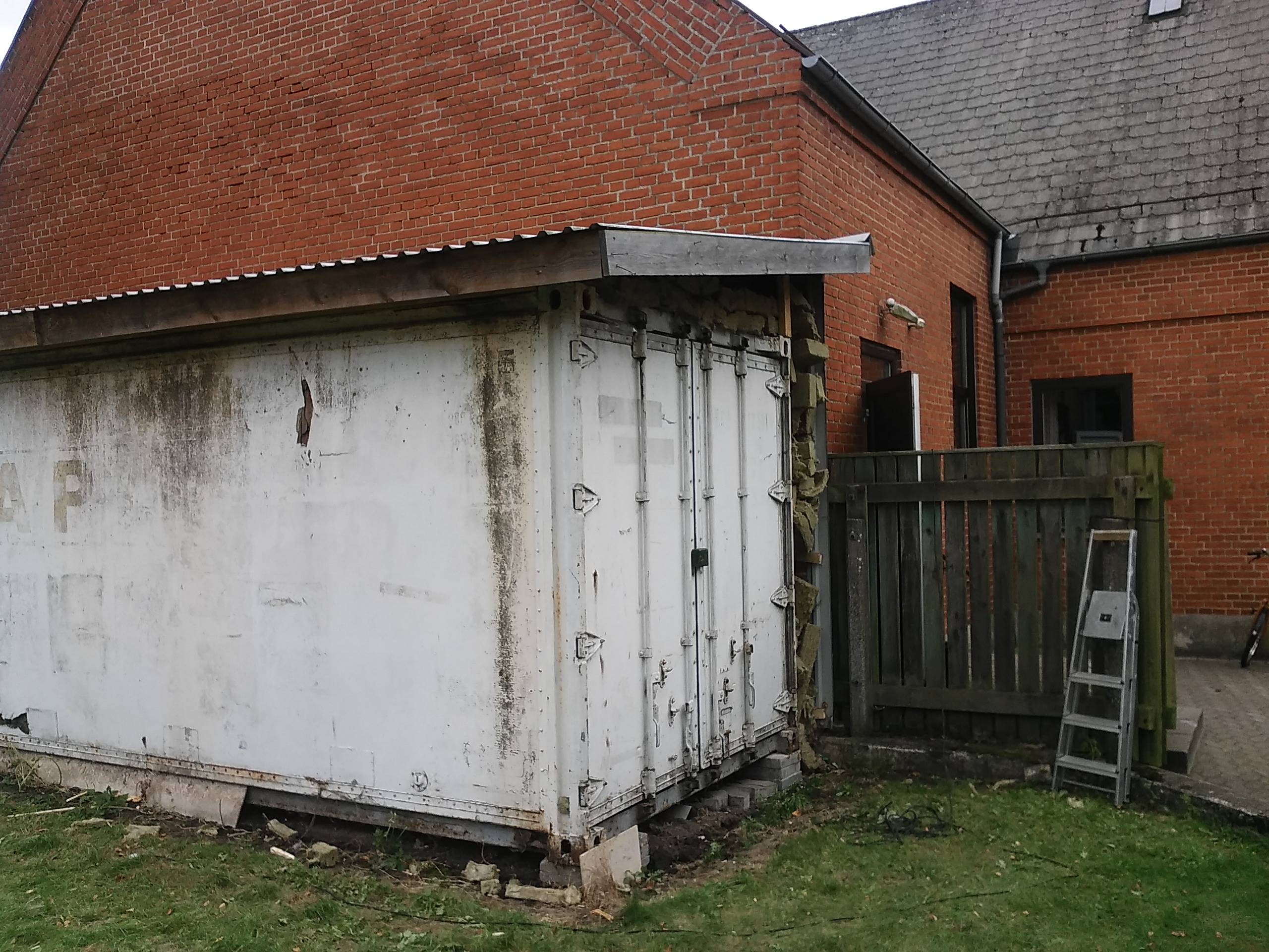 Billeder fra nedtagning af beklædning på container.